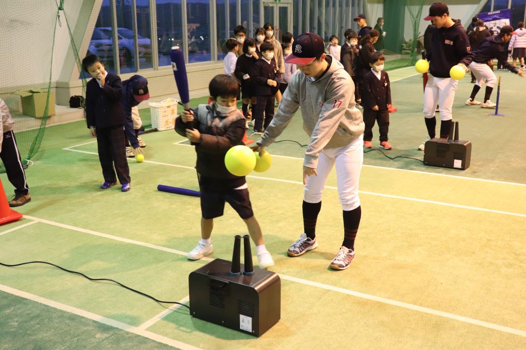 2月26日(水)に白山市の小学校で石川ミリオンスターズ様主催の野球教室が開かれました。打撃指導のコーナーで弊社の二水(にすい)ボールを使用していただきました!
