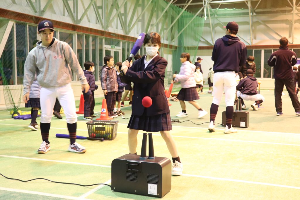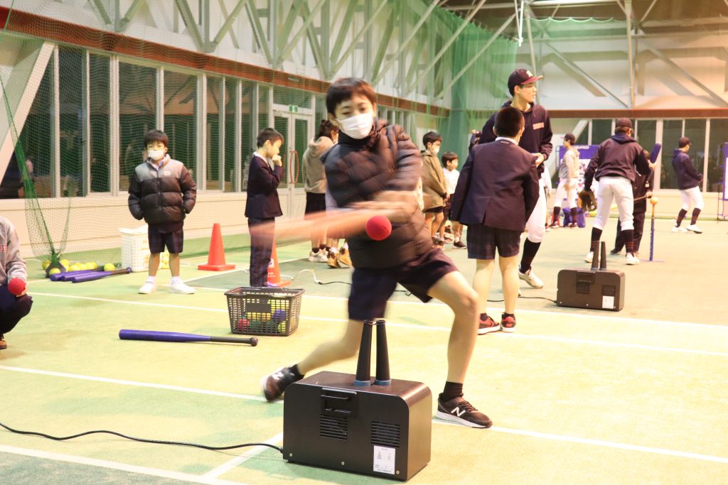 みんなピッチングマシンや二水ボールに興味津々で、大いに盛り上がりました!